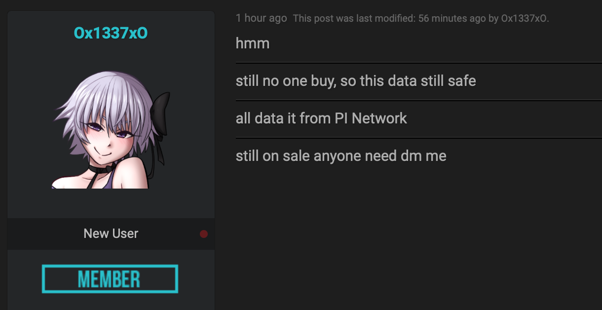 Điều đáng quan tâm là theo tuyên bố của người này, 17GB dữ liệu nói trên được thu thập từ Pi Network, một ứng dụng đào tiền điện tử thu hút được nhiều sự quan tâm của người Việt trong thời gian qua.