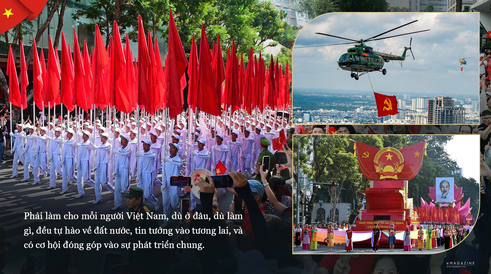 Thế kỷ XXI là thế kỷ của những dân tộc biết làm chủ vận mệnh của mình. Và dân tộc Việt Nam - với tất cả những bài học từ quá khứ, với tất cả sự đoàn kết hôm nay - nhất định sẽ viết tiếp những chương mới rực rỡ trong hành trình phát triển của mình. Vì một nước Việt Nam độc lập, tự do, hạnh phúc, phồn vinh, văn minh, thịnh vượng, có vị thế và tiếng nói quan trọng trong cộng đồng quốc tế.