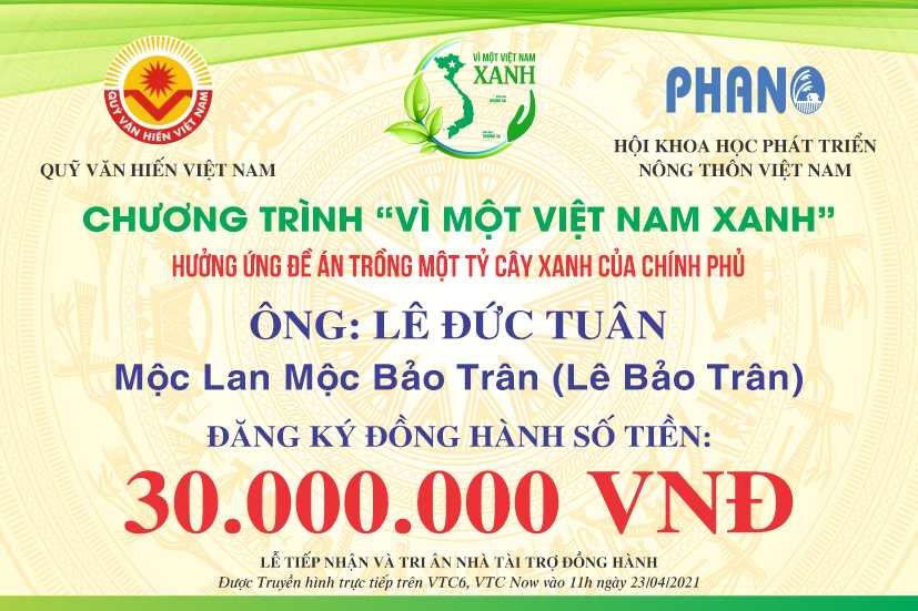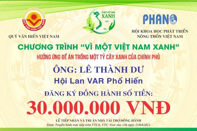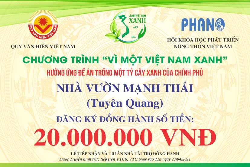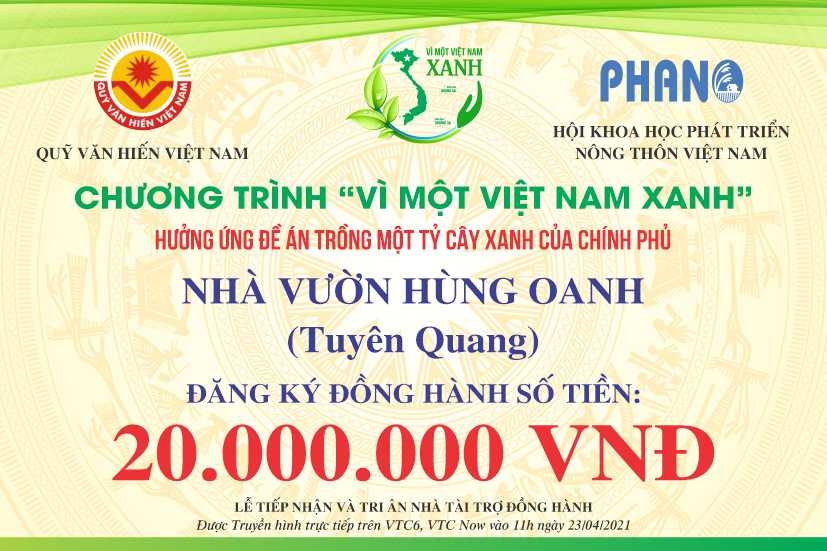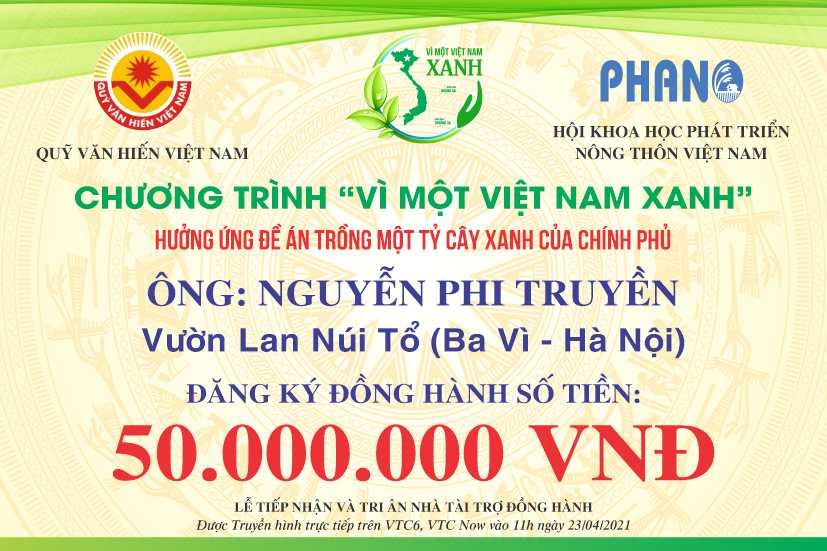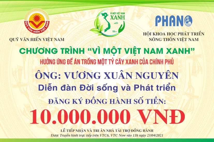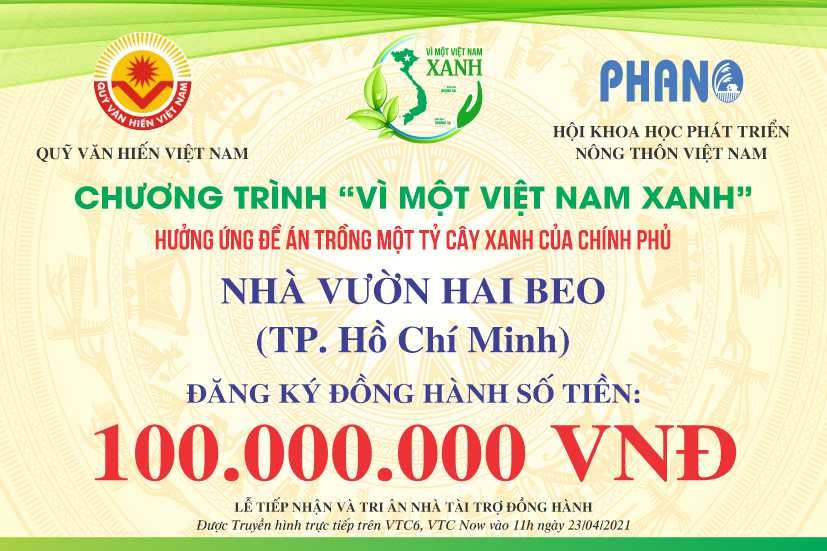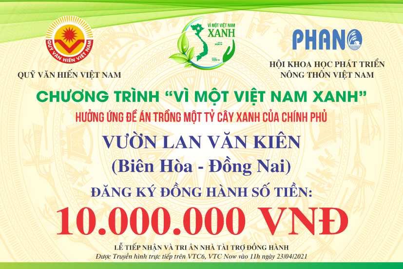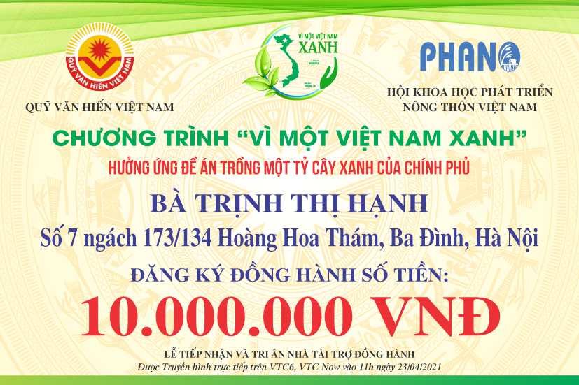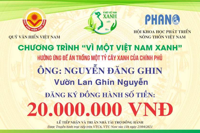 Ngay khi BTC Chương trình VÌ MỘT VIỆT NAM XANH ra lời kêu gọi, Cộng đồng Doanh nhân, Nghệ nhân, Chủ nhà vườn Hoa Cây cảnh Việt Nam dùng đông đảo các mạnh thường quân đã nhiệt tình hưởng ứng đăng ký tham gia đồng hành.