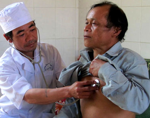 | Trạm trưởng Nguyễn Cao Bằng khám bệnh cho người dân |
