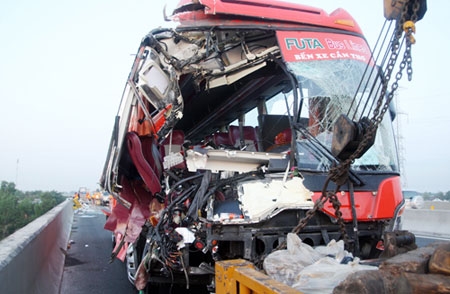 Cùng lúc, Hồ Kim Luân (35 tuổi, quê Vĩnh Long) lái ôtô khách Phương Trang loại 50 chỗ từ phía sau lao tới, đâm thẳng vào hai xe tải. Cú tông mạnh khiến đầu xe Phương Trang biến dạng, nhân viên phục vụ Nguyễn Thanh Bình (31 tuổi) chết tại chỗ.