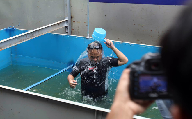Sau khi thực hiện trình diễn tắm trong khoảng hơn 10 phút dưới bể nước, TS Kubo Jun (cố vấn kỹ thuật Tổ chức xúc tiến Thương mại-Môi trường Nhật Bản) cho biết, khi bước vào bể nước đạt tiêu chuẩn Việt Nam sau khi xử lý bằng công nghệ Nano - Bioreactor Nhật Bản, ông thấy nước hoàn toàn không có mùi hôi.