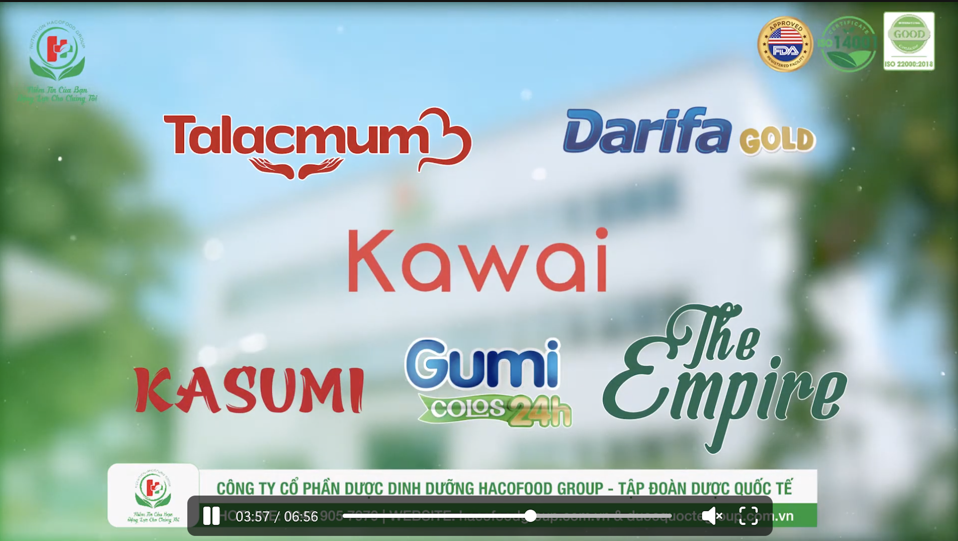 Trước đó, trên kênh YouTube “Tập đoàn Dược Quốc tế”, một đoạn clip gần 7 phút giới thiệu Công ty Hacofood Group đã sản xuất nhiều sản phẩm như: sữa dinh dưỡng Talacmum, Darifa Gold, Kasumi, sữa dinh dưỡng The Empire, sữa dinh dưỡng Kawai, sữa dinh dưỡng Gumi Colos 24h Baby... Đoạn clip cũng quảng cáo Công ty Hacofood có “sản lượng sản xuất lên đến hơn 5 triệu lon sản phẩm mỗi năm”.