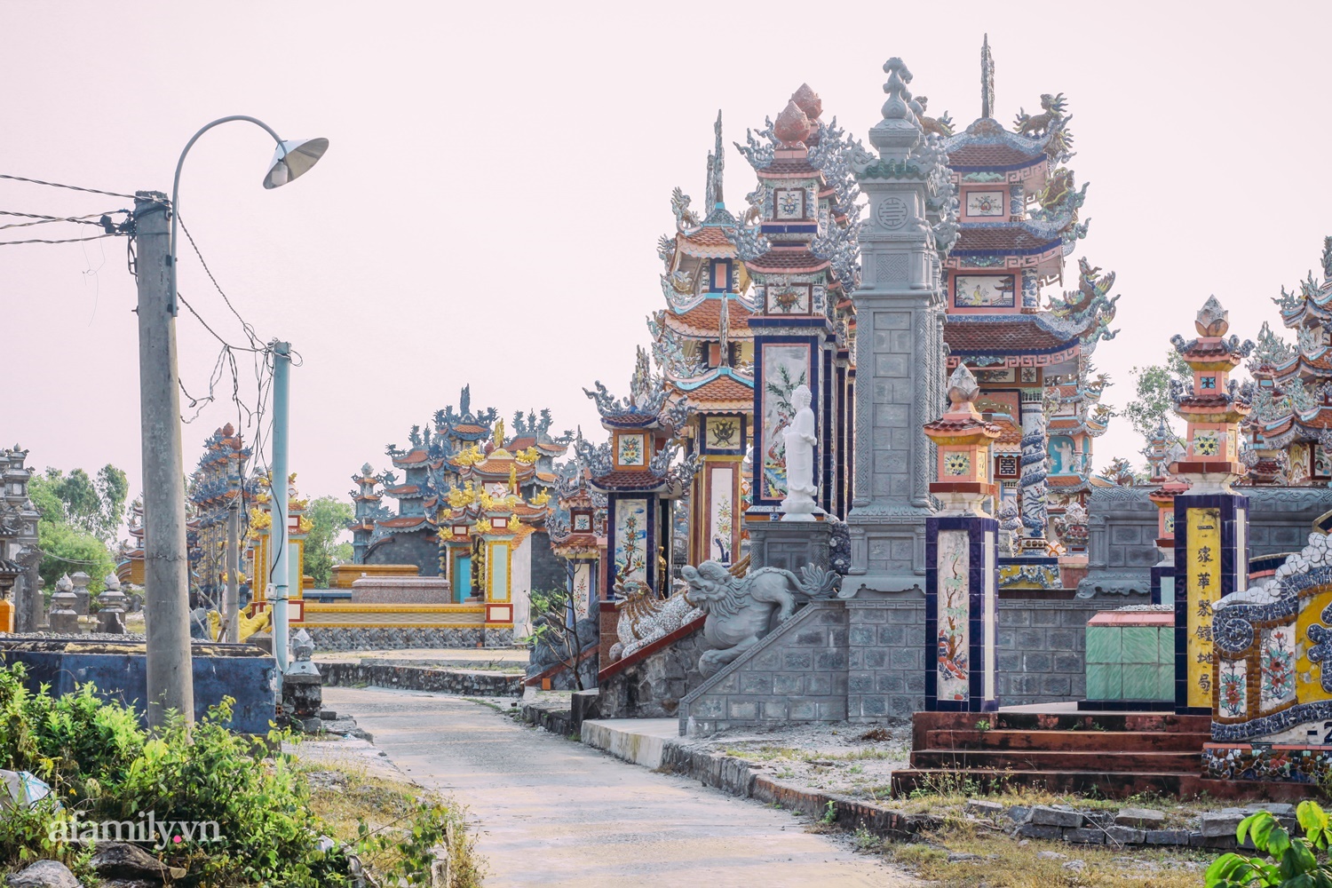 Các lăng mộ trùng trùng điệp điệp, san sát nối đuôi nhau với đủ màu sắc hình dáng trải dài trên đồi cát bao la khiến ta như bước vào một vùng đất thâm sâu, bí hiểm khác với vẻ ngoài nghèo khó của người dân An Bằng.