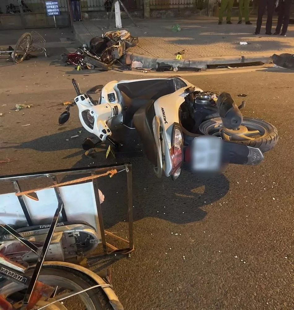 Xe ô tô sau khi đâm vào các phương tiện trên đã lao tiếp vào cột biển quảng cáo trên vỉa hè bên đường, dẫn đến nát phần đầu. Các xe máy, xe đạp điện và xe đạp hư hỏng nặng.