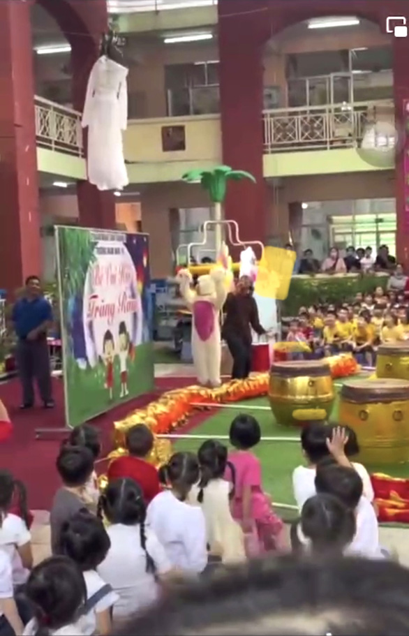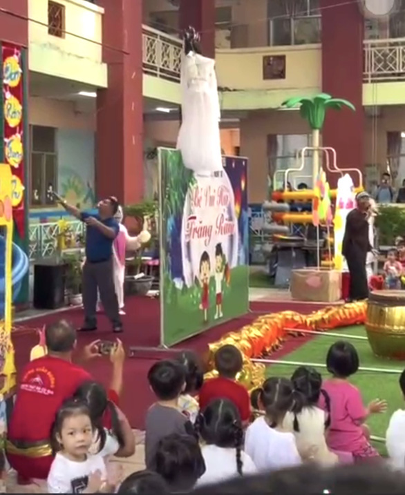 Chiều 9/9, trả lời Tuổi Trẻ Online, đại diện lãnh đạo Trường mầm non 10 (quận 11, TP.HCM) - cho biết: "Tập thể giáo viên, cán bộ công nhân viên nhà trường rất buồn từ khi clip của một phụ huynh đưa lên với hình ảnh gây hiểu nhầm về lễ hội Trung thu mà trường tổ chức cho các bé mầm non sáng qua, 8/9".