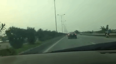 "Hôm nay cũng bị 1 pha giống thế này ở Phúc Thọ, may cảnh giác lên phanh kịp. Như này mà gặp phải cao tốc là dễ gây tai nạn liên hoàn lắm. Va chạm mạnh vậy chắc kính xe ô tô con kia cũng bị nứt mất", tài khoản A.D. chia sẻ.