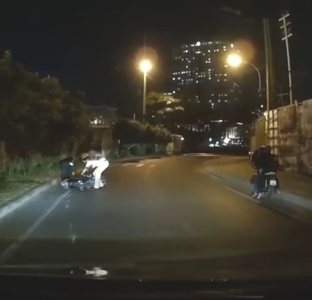 Theo đó, thời điểm trên có 1 nam thanh niên đi xe máy trên đường thì một CSGT rọi đèn pin ra hiệu lệnh dừng. Lúc này, nam thanh niên tìm cách đánh lái lách qua CSGT này. Sau đó, chiến sĩ CSGT giơ chân đạp vào xe máy của nam thanh niên khiến xe và người té ngã xuống đường. Tiếp đó, chiến sĩ CSGT đã đi lại lấy chìa khoá xe máy của nam thanh niên.