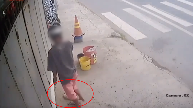 | Clip: Người đàn ông dừng xe máy đứng trên vỉa hè nghe điện thoại, bất ngờ đánh tráo... dép tổ ong - Nguồn: KSĐP |