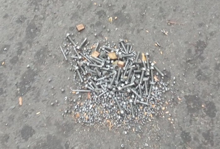 Có thể thấy trong đoạn clip được người dân quay lại, loại đinh mà các phương tiện cán phải rất đa dạng hình thù. Không chỉ xe máy, ô tô cũng chịu cảnh dính đầy đinh trên bánh xe. Có xe bị cán rất nhiều đinh trên một bánh.