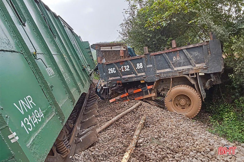 Thấy vậy, nam tài xế vội mở cửa xe, rời khỏi cabin. Đúng lúc này, tàu chở hàng SH62 di chuyển hướng Nam - Bắc đi tới và va chạm với xe tải. Vụ việc khiến người lái tàu hàng bị thương; 1 đầu máy, 3 toa hàng và nhiều mét đường ray bị trật khỏi nền.Vụ tai nạn cũng khiến người lái tàu hỏa bị thương nhẹ, giao thông đường sắt Bắc - Nam bị tê liệt.
