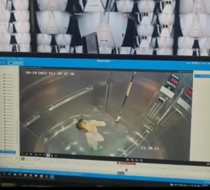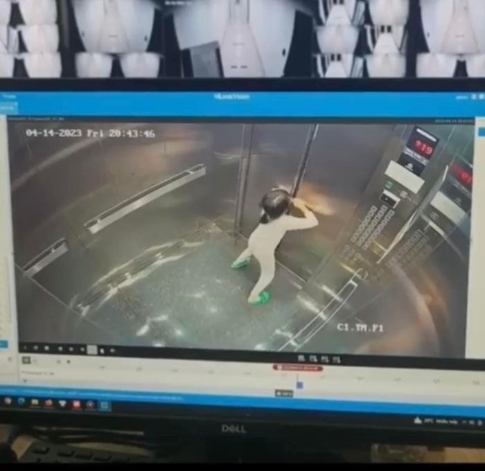 Tiếp đó, bé gái đã dùng tay và chân cố gắng cậy cửa thang máy nhưng vẫn không được. Ở phía ngoài, người bà cũng cố luồn tay, chân vào để giữ thang máy nhằm giải cứu cháu gái nhưng bất lực. Ở trong tình huống nguy hiểm, dù sợ hãi nhưng bé gái vẫn cố gắng ấn chuông báo động cho Ban quản lý tòa nhà nắm được.