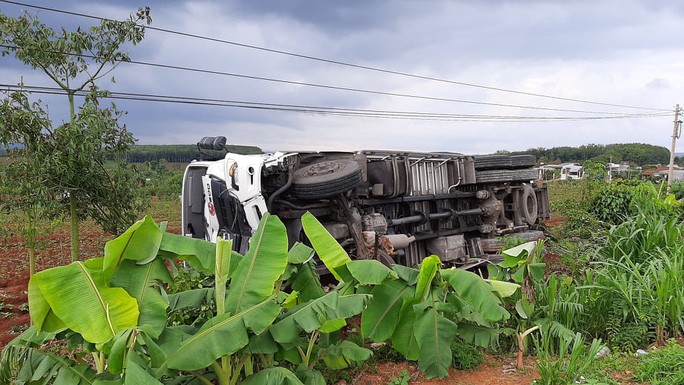 Riêng chiếc xe tải gây tai nạn đã chạy thêm gần 1km rồi lật nhào xuống vực, lật nghiêng.