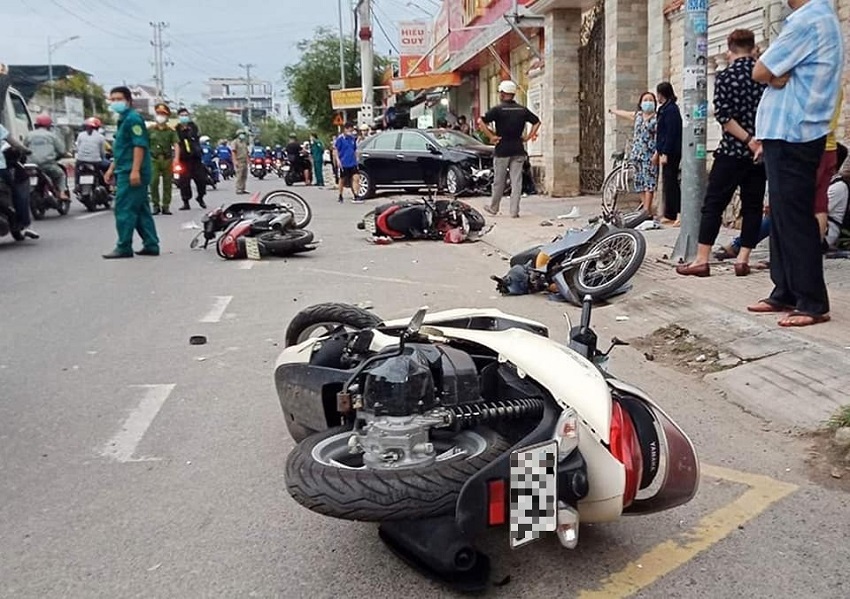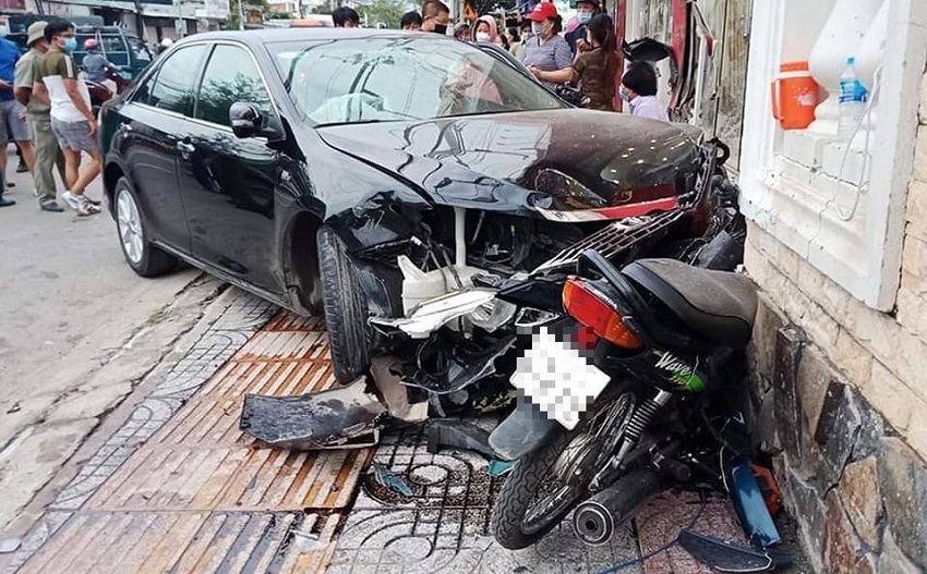 Theo Vietnamnet thông tin, tại hiện trường, 4 xe máy bị húc văng, vỡ vụn nhiều mảnh trên mặt đường, trong đó có một chiếc bị đầu xe ô tô ghim chặt vào tường nhà.