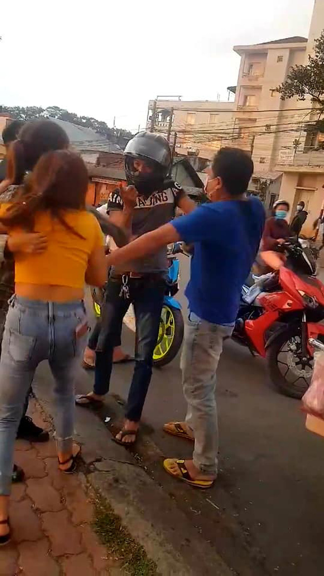 Bị những người xung quanh đánh, anh ta còn cố kéo người yêu đi: "Lên xe anh chở về, anh nói thật", nhưng cô gái nhất quyết không theo và núp vào người bạn đi cùng. Cuối cùng, thanh niên lên xe và rời đi một mình.