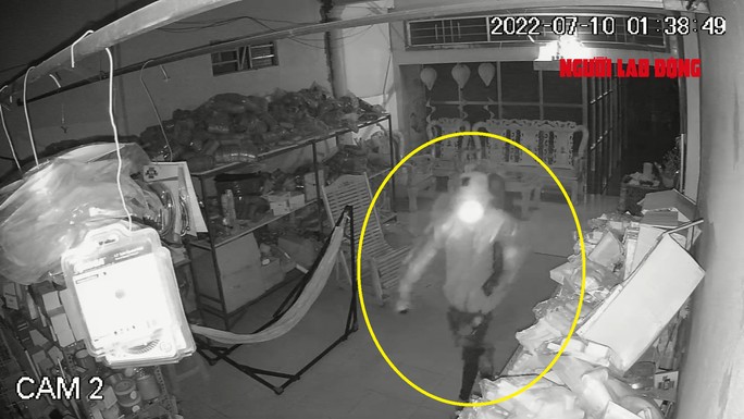Sau đó, một thanh niên đeo đèn pin trên đầu, đi đến cửa sắt để tìm cách phá ổ khóa. Sau khi phá khóa thành công, người này đi vào bên trong để tìm sản có giá trị để lấy trộm. Trong khi đó, nam thanh niên còn lại ngồi trên xe máy để cảnh giới.