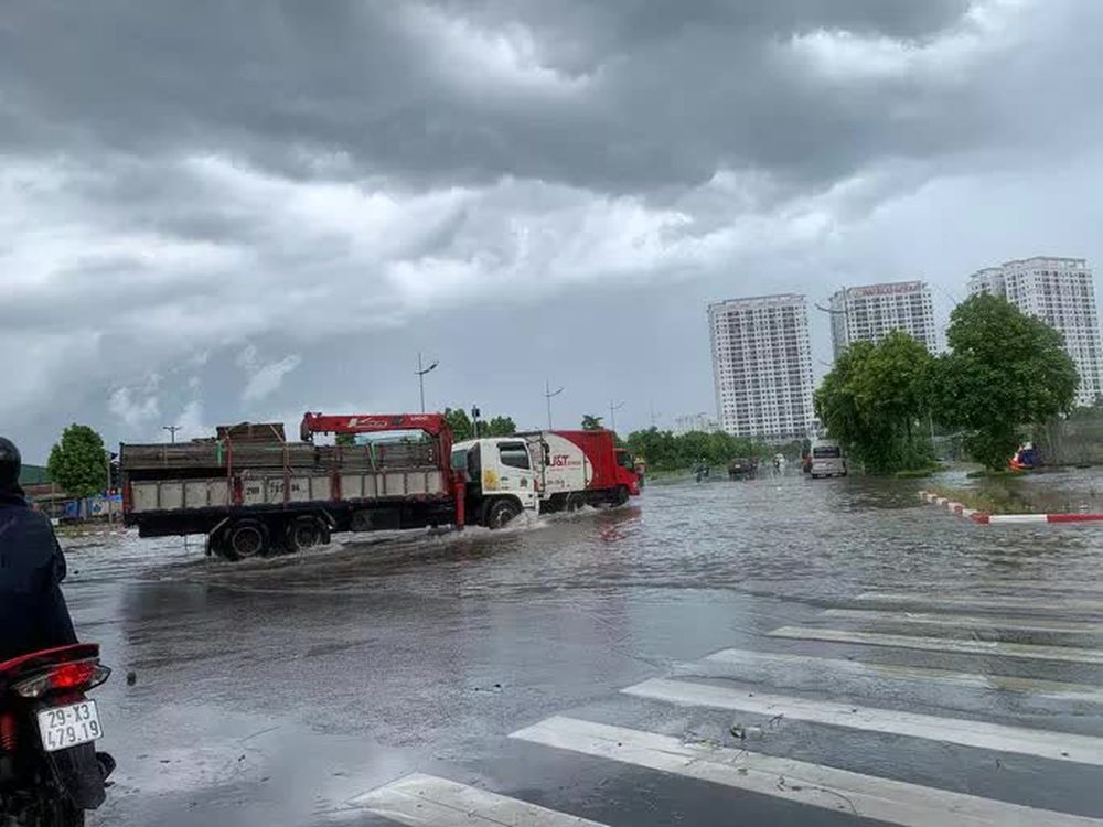 Khoảng 9 giờ sáng 25-8, mưa lớn kèm gió to, sấm sét xuất hiện tại Hà Nội. Mưa chỉ trong thời gian ngắn nhưng nhiều tuyến phố đã ngập.