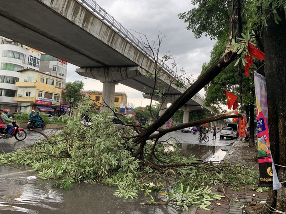 Chị Nguyễn Hải (nhà ở Hoài Đức, Hà Nội) cho biết chị đang đi xe máy di chuyển trên quốc lộ 32 nhưng phải dừng lại trú vì mưa quá to. "Mưa to và gió mạnh, thỉnh thoảng còn có từng đợt lốc xoáy tưởng như kéo bay cả người được" - chị Hải nói.