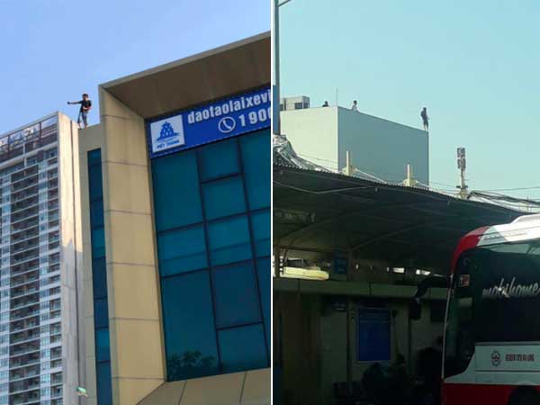 | Nam thanh niên hồn nhiên đi lại trên nóc nhà cao tầng |