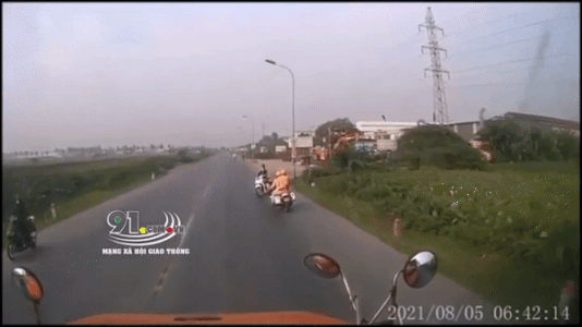 Do vi phạm quy định về an toàn giao thông nên khi gặp lực lượng chức năng, 2 người này lập tức né tránh, cắt ngang đầu xe container đang đi tới. Tình huống xảy ra đột ngột khiến tài xế container phải lập tức đánh lái lao xuống mương bên đường. Cũng nhờ hành động này của người tài xế mà may mắn không có thiệt hại về người.