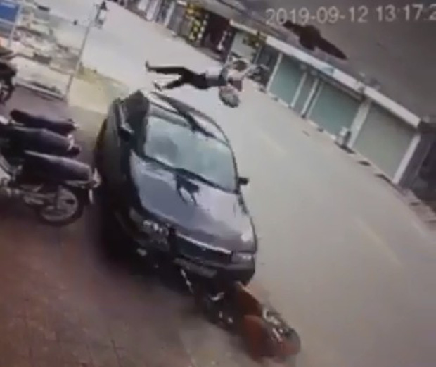 Nạn nhân bị hất tung qua nóc ô tô - Ảnh cắt từ clip