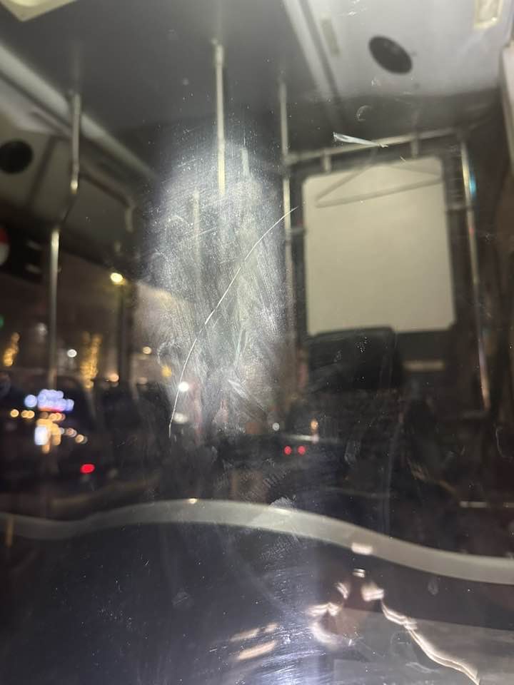 Theo những hình ảnh đăng tải trên mạng xã hội, kính xe buýt bị xước một đoạn nhỏ, một phần lốp bị chém rách.