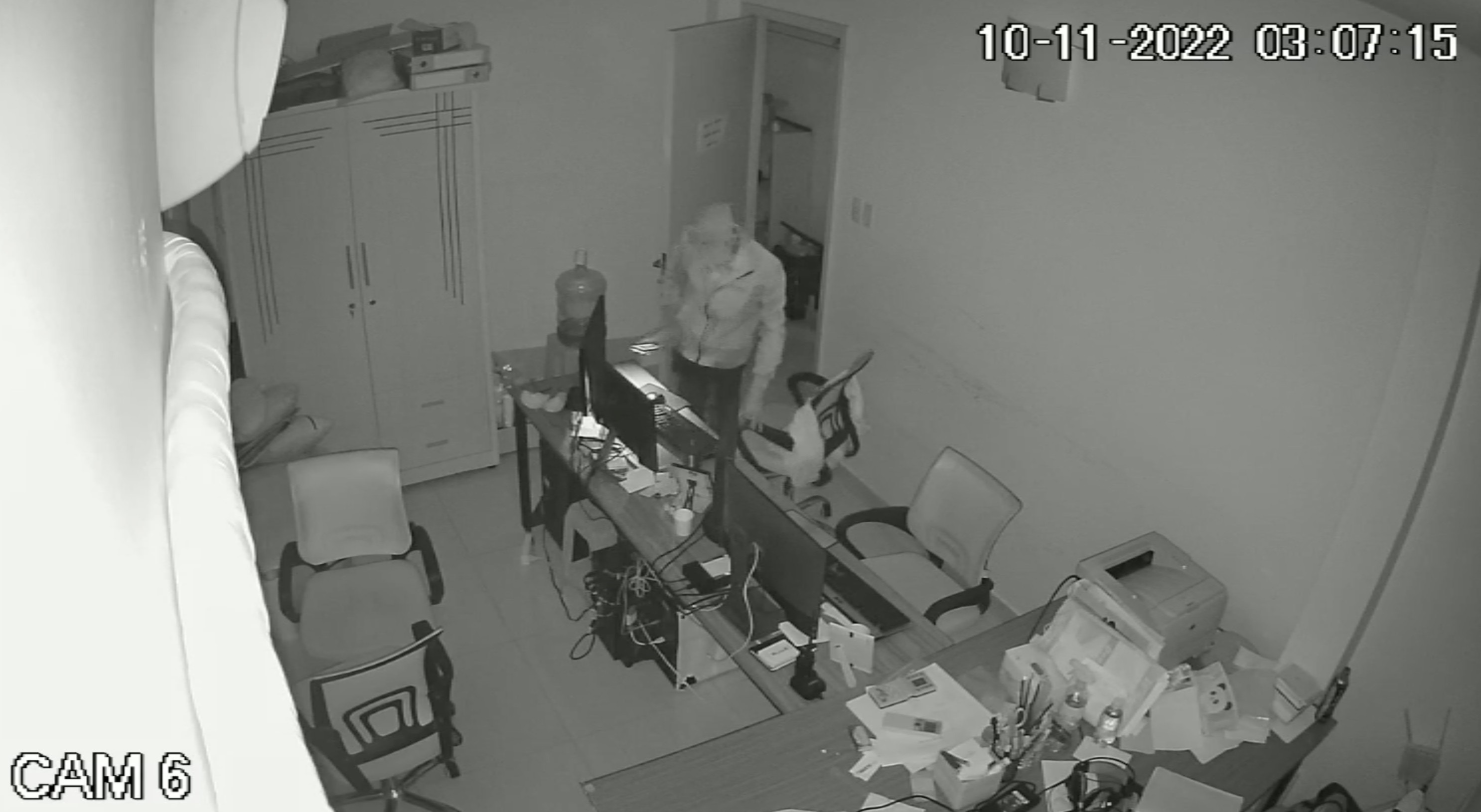 Thời điểm này, cửa tiệm có 1 nhân viên ngủ lại để trông coi, nhưng đối tượng vẫn bình thản lục lọi các ngóc ngách để tìm kiếm các tài sản có giá trị.