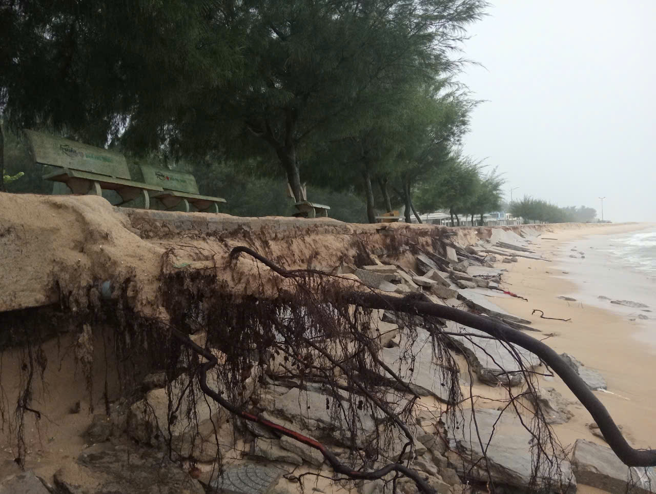 Mưa lớn cùng sóng biển cao trong những ngày qua đã làm bờ biển ở xã Phú Thuận, huyện Phú Vang tiếp tục xuất hiện nhiều điểm sạt lở, ăn sâu vào đất liền. Sạt lở nghiêm trọng diễn ra ở những vị trí chưa được xây dựng kè chống xâm thực.