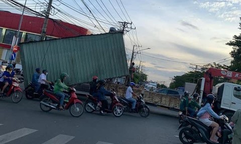 Khi đến ngã tư với đường Nguyễn Tri Phương thì phần thùng container bị vướng dây cáp viễn thông làm phần thùng container rơi xuống đường.