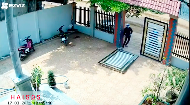 Cụ thể vào khoảng 13h45' chiều ngày hôm nay (17/3), 2 đối tượng tiếp cận một ngôi nhà rồi phá sập cánh cổng sắt. Một tên lẻn vào trong sân để tiếp tục tìm cách trộm xe máy, tên còn lại đứng ngoài để sẵn sàng cho đường rút.