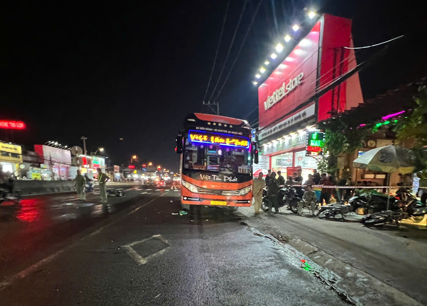 Công an TP Bến Cát, tỉnh Bình Dương tối nay phối hợp với các cơ quan chức năng khám nghiệm hiện trường, điều tra nguyên nhân vụ tai nạn khiến một người phụ nữ tử vong, một người khác bị thương.