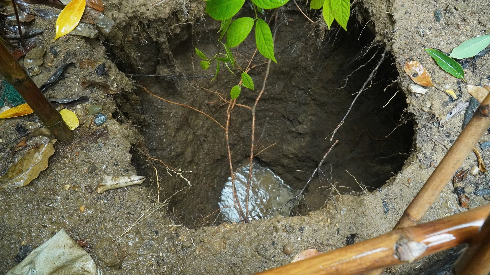 Theo người dân, lúc sáng sớm nay, họ nghe một tiếng động lớn, khi chạy ra vườn thì thấy hố sụt này.