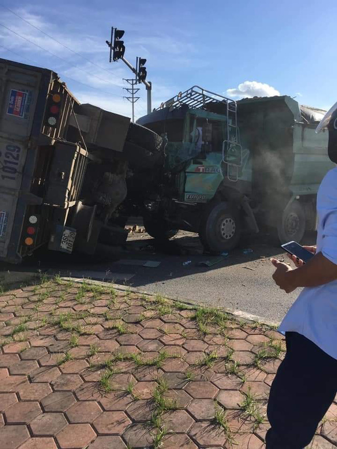 Ở hiện trường vụ tai nạn có thể thấy 2 xe tải đã bị lật đổ, hàng hóa trên xe vương vãi khắp nơi. Cùng với đó là một chiếc xe con hoàn toàn vụn nát do va chạm mạnh. Nhưng may mắn thay, vụ tai nạn tuy nghiêm trọng nhưng không gây thiệt hại về người. Các nạn nhân chỉ bị thương nhẹ.