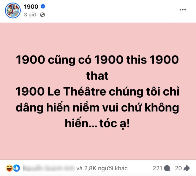 Theo đó, phía 1900 Le Théâtre cho biết, chuyện có trùng tên là 1900 được chủ của salon chia sẻ vì quá mến mộ 1900 Le Théâtre nên mới đặt tên như vậy. Đây cũng chỉ là một con số, vì thế không mang tính độc quyền của bất kì bên nào.