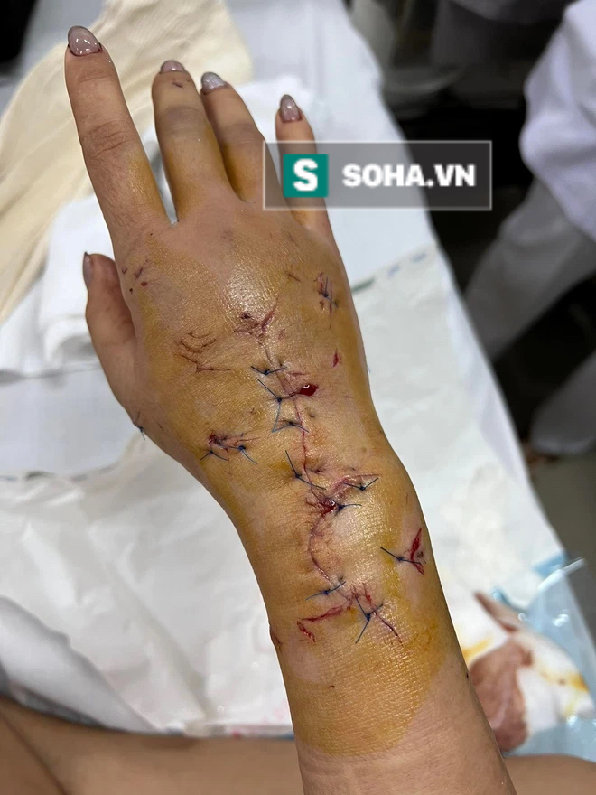 Kết luận của bệnh viện cho thấy bàn tay của cô gái bị nhiều vết thương nham nhở, đứt gân duỗi chung các ngón tay phải, 2 vết thương ở vị trí đầu.