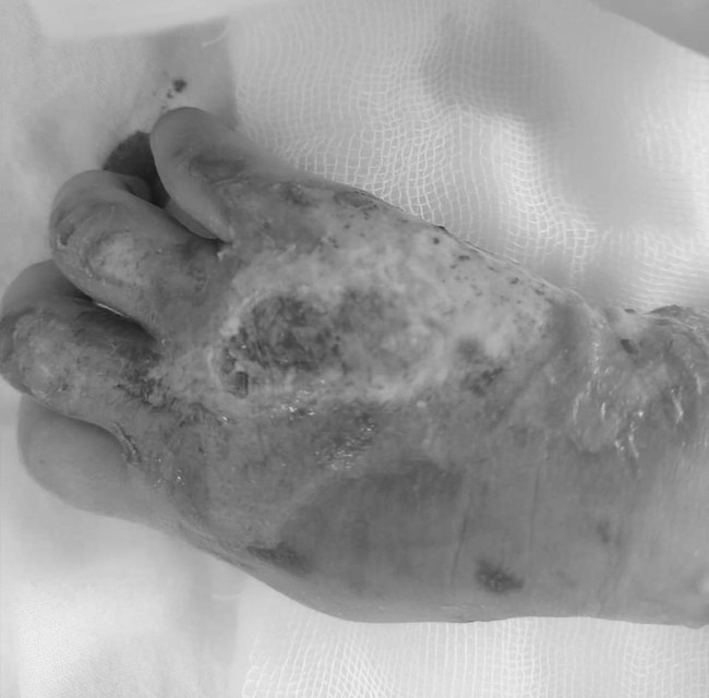 Sau khi đắp thuốc nam, vết thương không khỏi mà ngày càng lan rộng, gia đình vội đưa bé vào Bệnh viện Sản - Nhi Bắc Giang điều trị. Qua kiểm tra, bác sĩ xác định trẻ bị bỏng độ 3, vết thương ở mu bàn tay phải, có tình trạng nhiễm trùng.