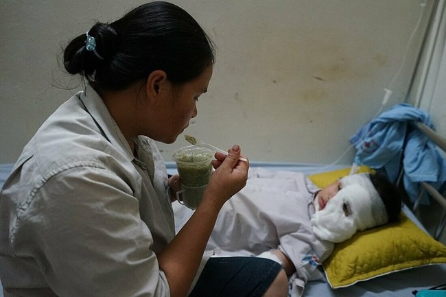 Gặp tai nạn bất ngờ, chị vứt bỏ bánh sinh nhật, chùm bóng, hai tay ôm mặt chạy vào nhà vệ sinh. Chị lập tức dội nước lên mặt để làm giảm cơn bỏng rát. Sau đó, chị được đưa vào bệnh viện điều trị.