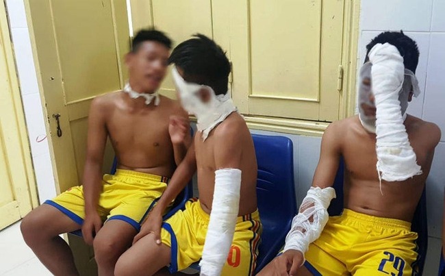 Ngay sau đó, 4 người được đưa vào Bệnh viện Sản Nhi Nghệ An cấp cứu trong tình trạng bị thương ở vùng mặt, cổ và tay. Trong khi 3 cầu thủ có sức khỏe tiến triển tốt thì người đàn ông bật lửa được chuyển ra bệnh viện ở Hà Nội điều trị, chẩn đoán mức độ nguy hiểm hơn hẳn.