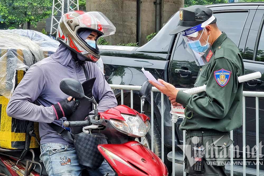 Anh Nam (quận Thanh Xuân) đi giao hàng qua bến xe Mỹ Đình bất ngờ khi bị xử lý vì cho rằng bản thân có giấy tờ hợp lệ. Cán bộ tổ công tác cho biết, giấy tờ của anh Nam là đúng mẫu quy định, tuy nhiên nội dung của giấy đi đường thể hiện rõ cung đường di chuyển từ nhà đến nơi làm việc và ngược lại, việc anh đi giao hàng là sai quy định.