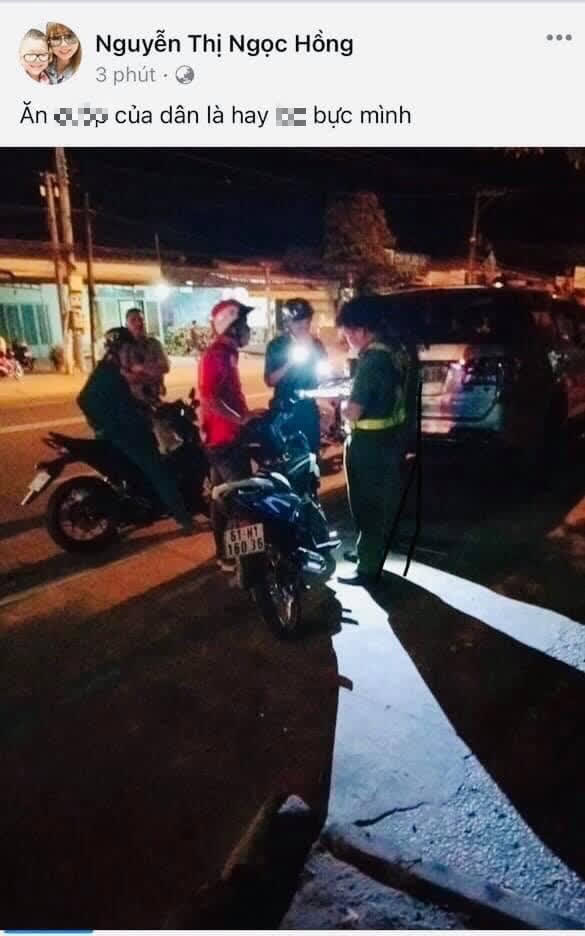 Đến 21h27 cùng ngày, Hồng dùng tài khoản Facebook cá nhân tên "Nguyễn Thị Ngọc Hồng" đăng tải hình ảnh đã chụp tổ tuần tra, kèm theo dòng trạng thái xúc phạm lực lượng chức năng.