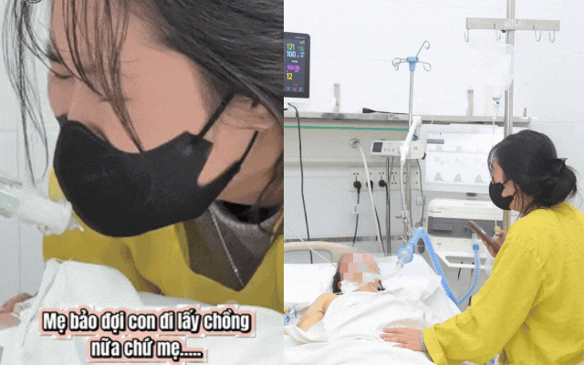 Dù là chị cả đã rất cố gắng mạnh mẽ nhưng giây phút này cô gái trẻ cũng đã suy sụp, gục ngã. Vừa vòng tay ôm rồi gục đầu cạnh giường bệnh, cô gái trẻ nghẹn ngào khóc nấc, "Mẹ bảo đợi con đi lấy chồng nữa mà mẹ".