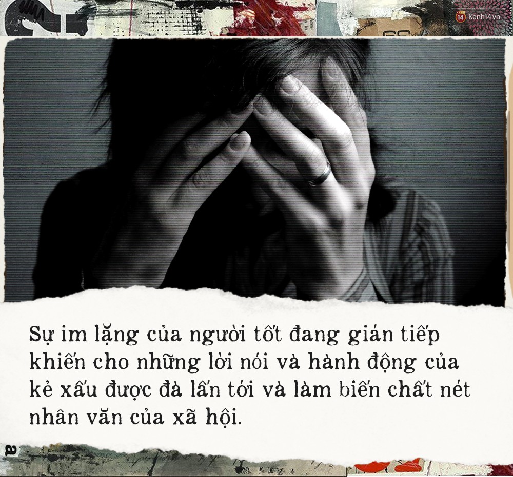 M.L.King - nhà hoạt hoạt động nhân quyền Mĩ gốc Phi, người được nhận giải Nobel về Hòa bình năm 1964 đã từng phát biểu: "Trong thế giới này, chúng ta xót xa không chỉ vì lời nói và hành động của những kẻ xấu, mà còn là vì sự im lặng đáng sợ của những người tốt". Đừng nghĩ rằng người tốt im lặng sẽ không ảnh hưởng đến ai. Sự im lặng của họ đang gián tiếp khiến cho những lời nói và hành động của kẻ xấu được đà lấn tới và làm biến chất nét nhân văn của xã hội.