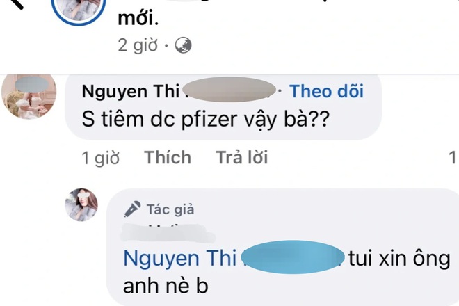 Sau khi thông tin được đăng tải, nhiều bạn bè của cô gái đã gửi lời chúc mừng. Trong đó, có người hỏi "Này chích tư hả e?" hoặc "Sao tiêm được pfizer vậy bà?". Tại các bình luận, L.H. đã trả lời: "Dạ em xin người ta đó" và "Tui xin ông anh nè".