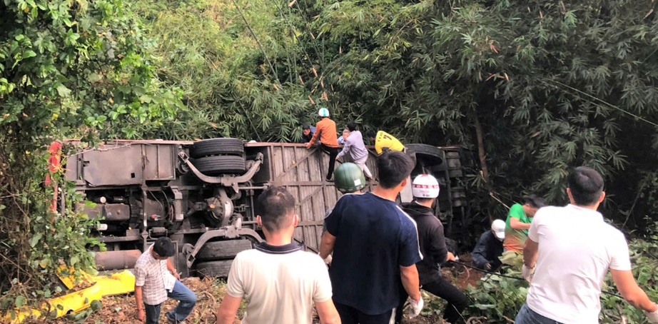 Sau cú va chạm mạnh, xe khách mất lái, lao sang phần đường bên trái và rơi xuống vực sâu khoảng 10m. Trên xe lúc này có tổng cộng 36 người. Vụ tai nạn khiến chị Tr. tử vong, ba người bị thương, trong khi hai phương tiện hư hỏng nặng.