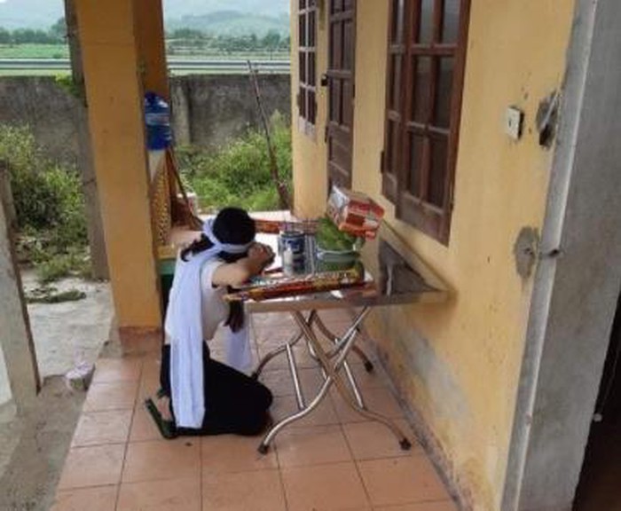 Nghe tin mẹ mất, cô bạn Ngô Thanh Trà (sinh năm 2000, quê Nghệ An) ngay lập tức bắt xe từ Đà Nẵng (nơi Trà làm việc) về huyện Thanh Chương, Nghệ An để chịu tang mẹ.