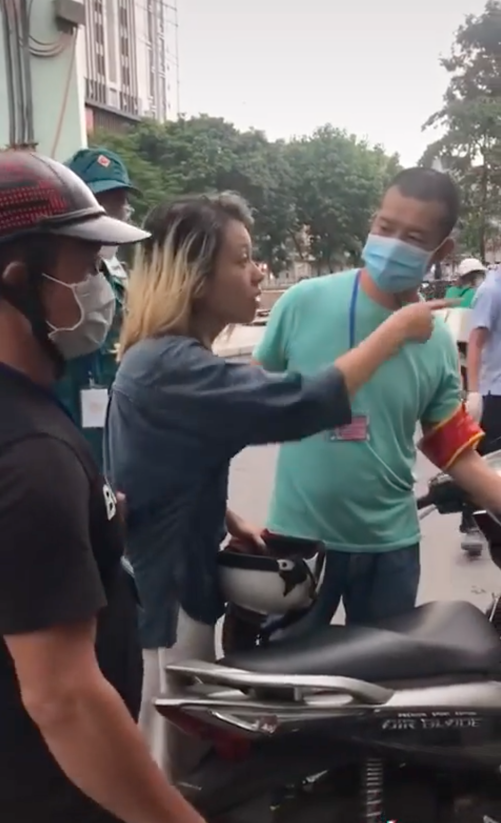 Lúc này có giọng của một người đàn ông xung quanh gắt: "Đeo khẩu trang vào đi" thì ngay lập tức đối tượng chất vấn: "Cháu đeo thế nào đấy là việc của cháu, chú đeo khẩu trang là việc của chú".