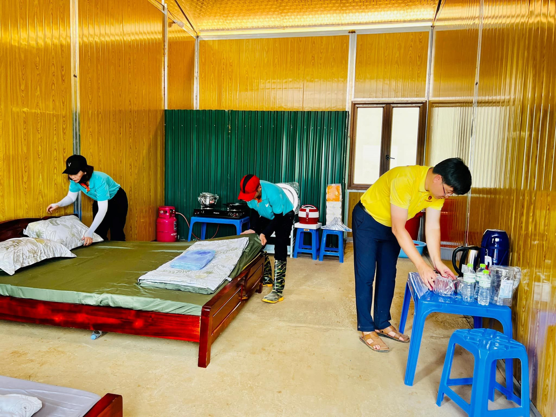 Khu tạm cư có diện tích hơn 2.000m², chỉ cách khu ở cũ của người dân Làng Nủ khoảng 1 km. Các nhà tạm cư được xây dựng bằng khung thép chắc chắn, đảm bảo an toàn và sự thoải mái cho các gia đình. Mỗi căn nhà đều được trang bị đầy đủ các vật dụng sinh hoạt thiết yếu, giúp các hộ dân nhanh chóng ổn định cuộc sống trong thời gian chờ khu tái định cư chính thức hoàn thành. Theo đại diện lãnh đạo UBND huyện Bảo Yên, khu tái định cư vừa được bàn giao vào chiều nay, 21/9.