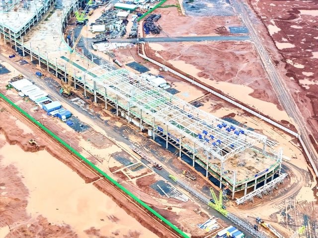 Ngoài ra, những hạng mục phụ trợ như nhà kỹ thuật, nhà VIP, trạm nguồn và các công trình khác đang trong giai đoạn thi công phần kết cấu mái thép, lợp tôn và hoàn thiện công trình.