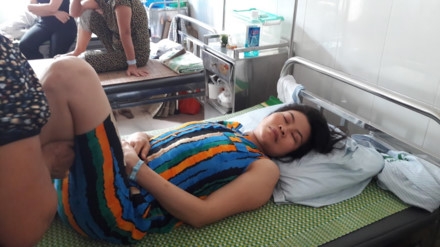 | Chị Thảo đang nằm điều trị tại BV Bạch Mai (Ảnh: Thùy Linh) |