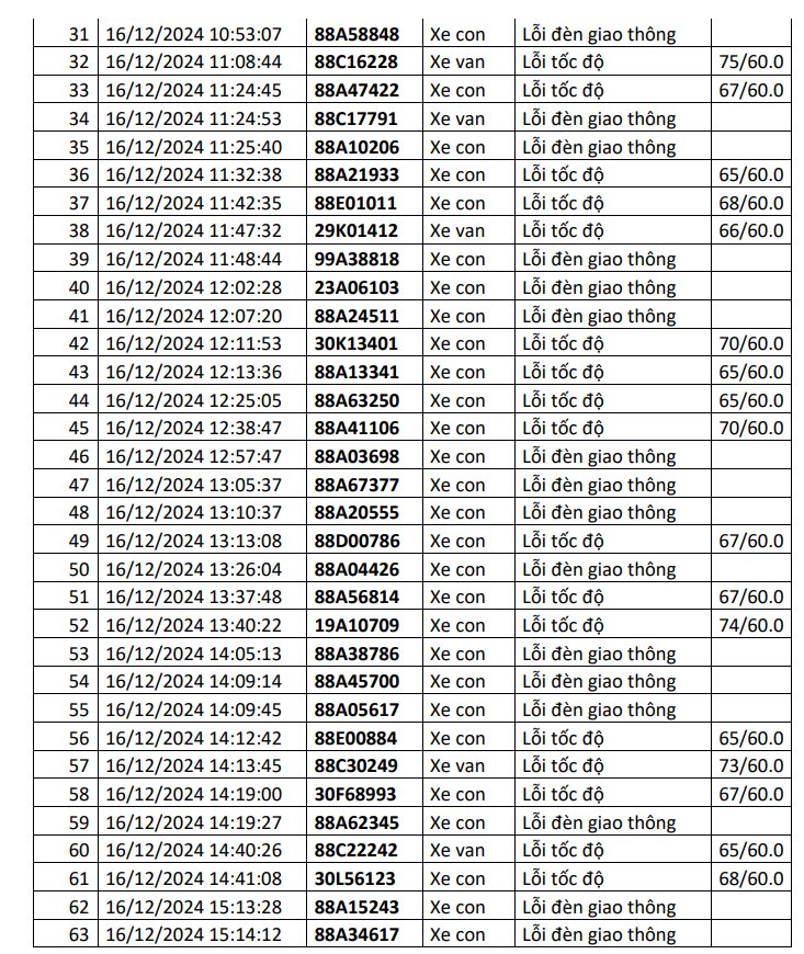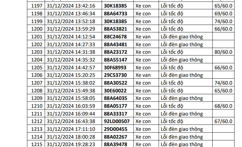 09/01/2025 13:14Công an công bố danh sách phạt nguội: 1.200 chủ xe có biển số sau đây đến làm việc và thực hiện việc nộp phạt theo quy định